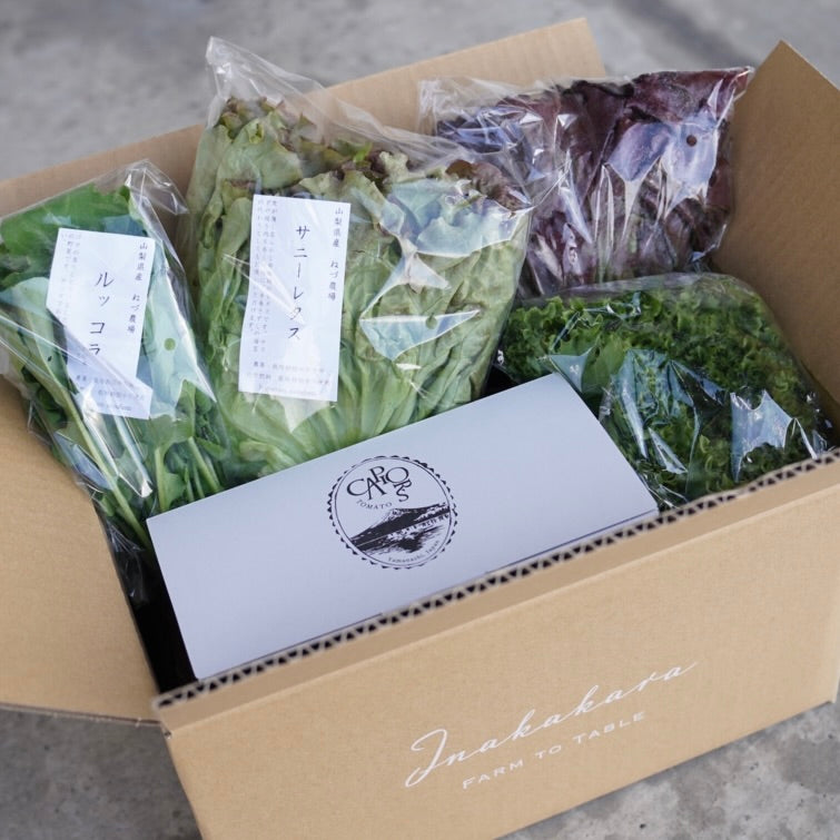 山梨県の市川三郷町の自然豊かな環境で育った、栽培期間中農薬不使用の朝どれ新鮮野菜と、最高糖度16度にも達する「カピオトマト」をセットにしました。